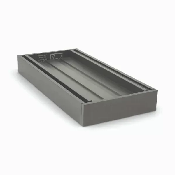 26mm x 100mm x 5600mm Ezy Flow tile inset grate in brushed gun metal is suitable for indoor and outdoor use. Ideal for bathrooms, around swimming pools, balconies and driveways.