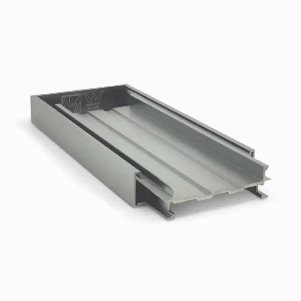 26mm x 100mm x 5600mm Ezy Flow tile inset grate in brushed silver is suitable for indoor and outdoor use. Ideal for bathrooms, around swimming pools, balconies and driveways.