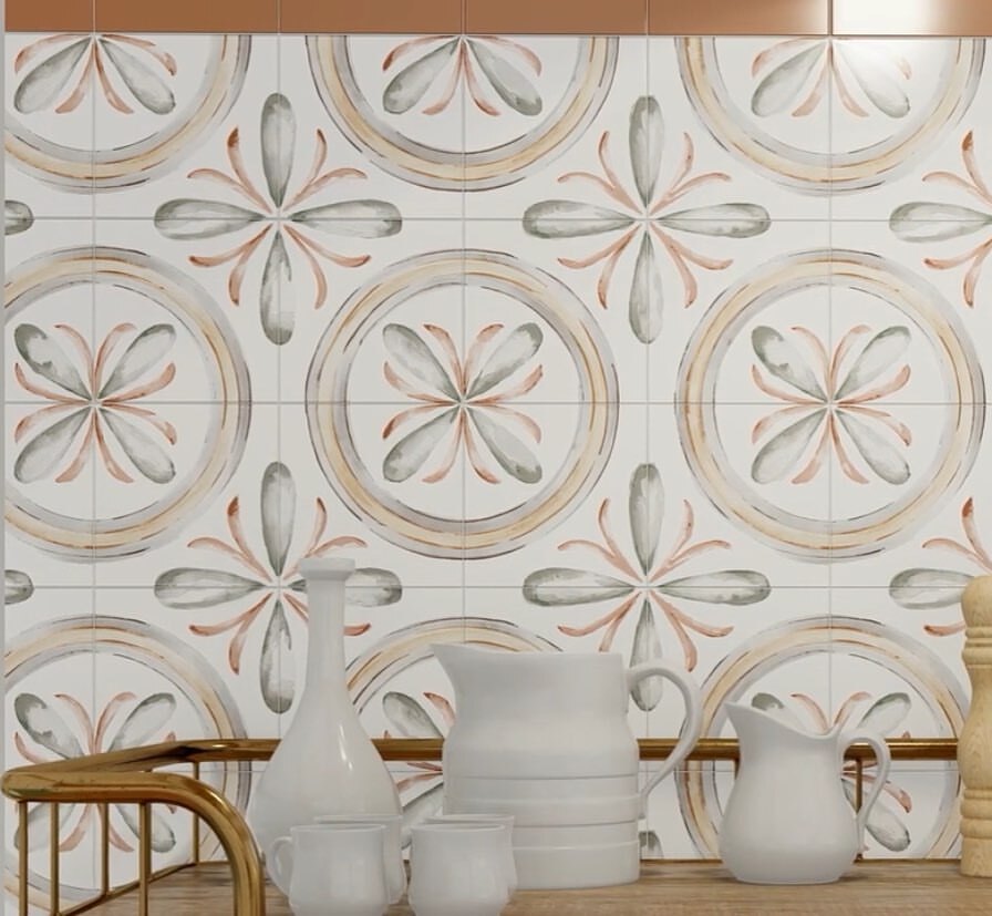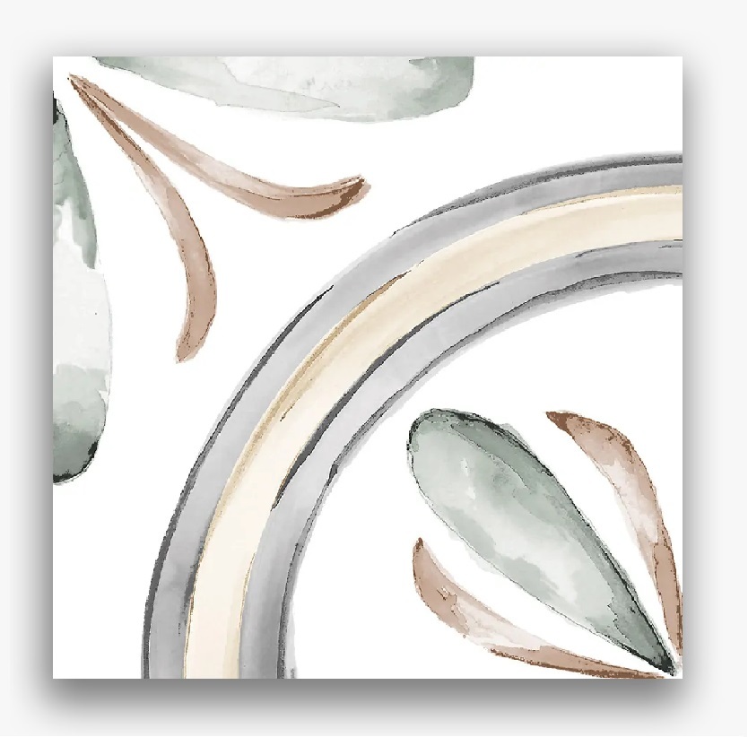 Colour: Earthy Greens, Terracota & Greys w/ White Background