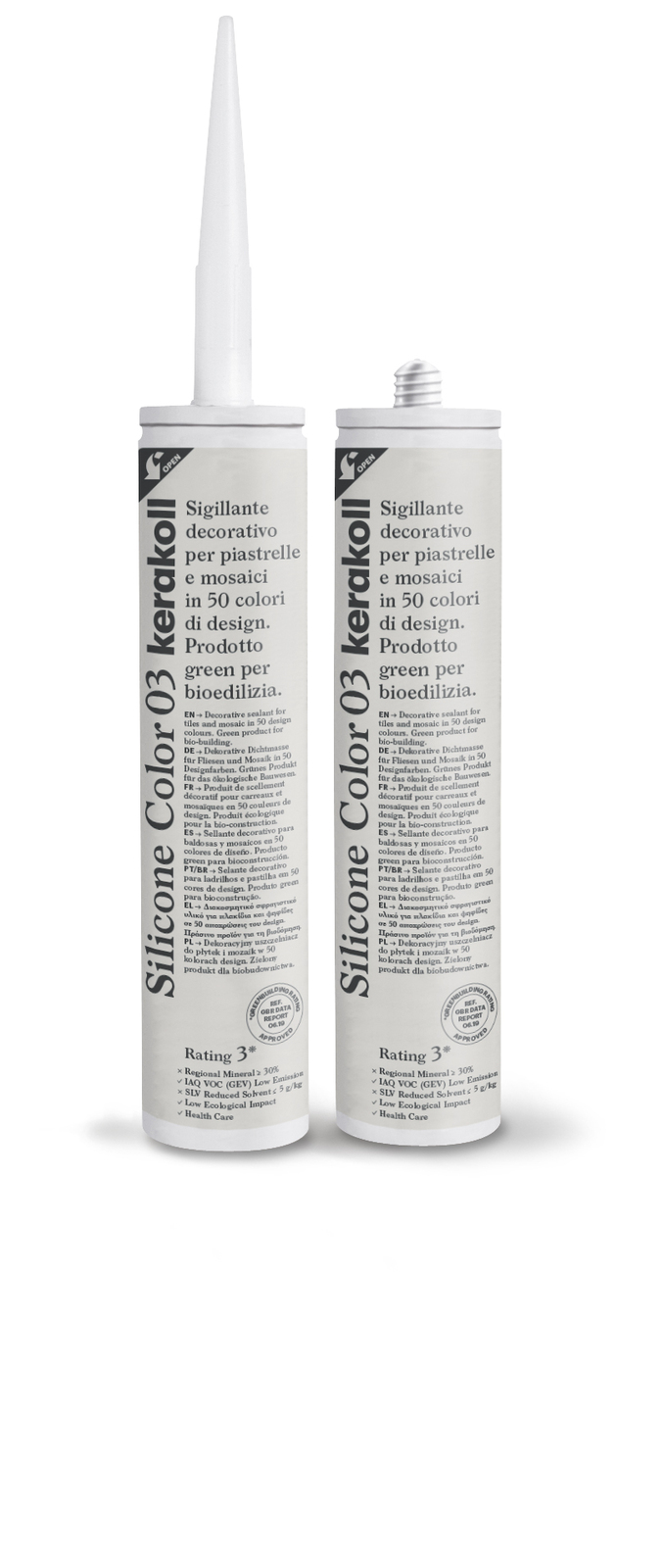Decorative sealant for tiles and mosaic in 39 design colours. Green product for bio-building. Silicone Color develops a high degree of adhesion to non-absorbent surfaces, guaranteeing the integrity and watertightness of ceramic and porcelain coverings subject to deformation.