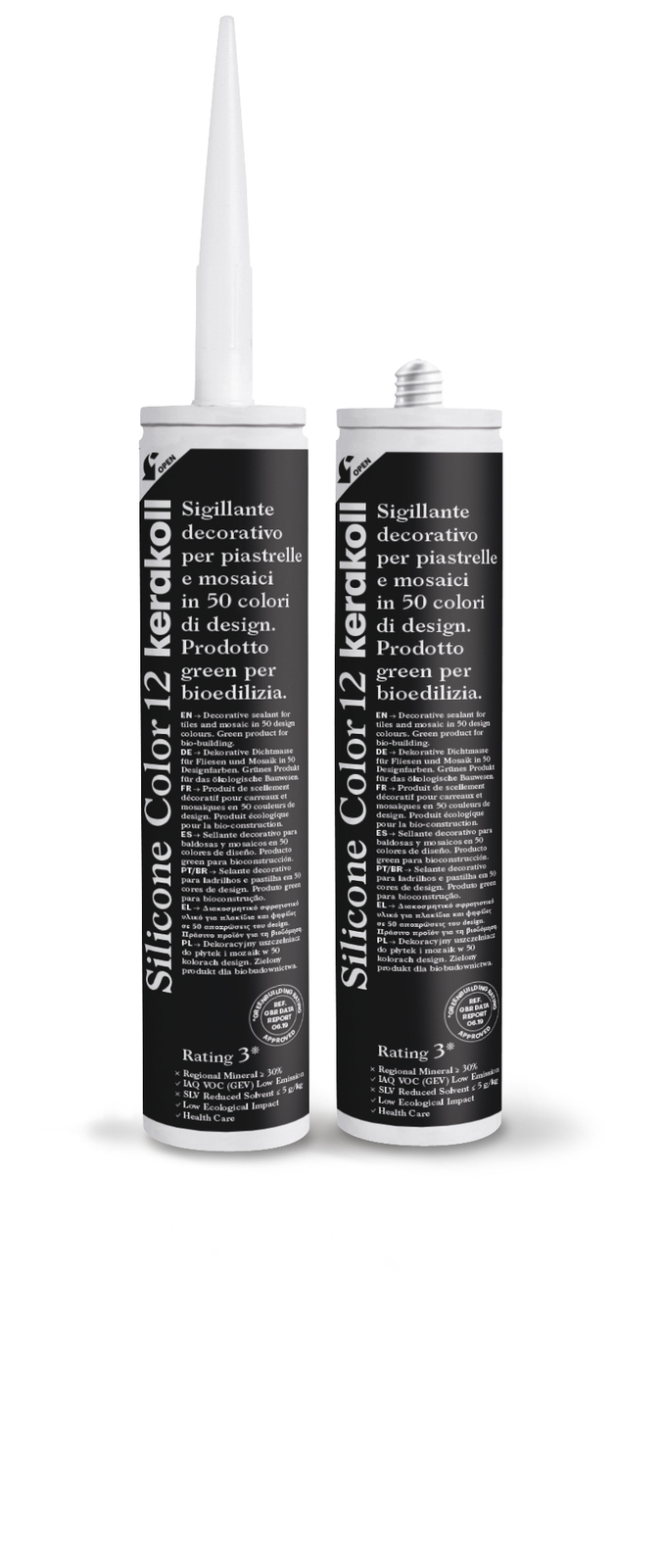 Decorative sealant for tiles and mosaic in 39 design colours. Green product for bio-building. Silicone Color develops a high degree of adhesion to non-absorbent surfaces, guaranteeing the integrity and watertightness of ceramic and porcelain coverings subject to deformation.