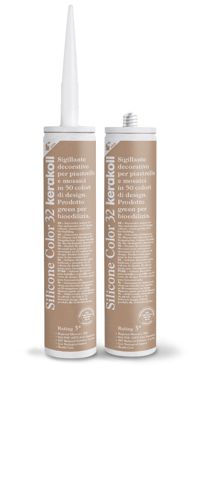 Decorative sealant for tiles and mosaic in 39 design colours. Green product for bio-building. Silicone Color develops a high degree of adhesion to non-absorbent surfaces, guaranteeing the integrity and watertightness of ceramic and porcelain coverings subject to deformation.