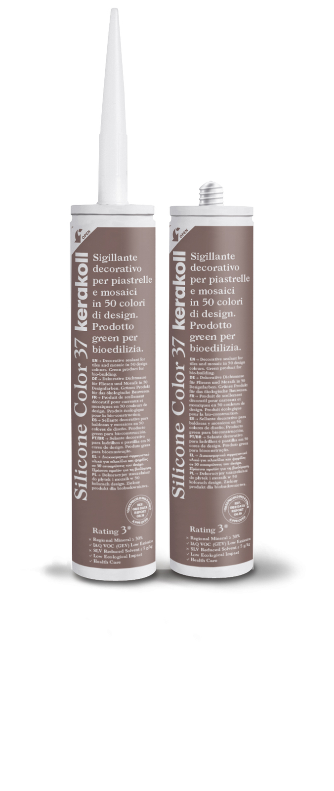 Decorative sealant for tiles and mosaic in 39 design colours. Green product for bio-building. Silicone Color develops a high degree of adhesion to non-absorbent surfaces, guaranteeing the integrity and watertightness of ceramic and porcelain coverings subject to deformation.