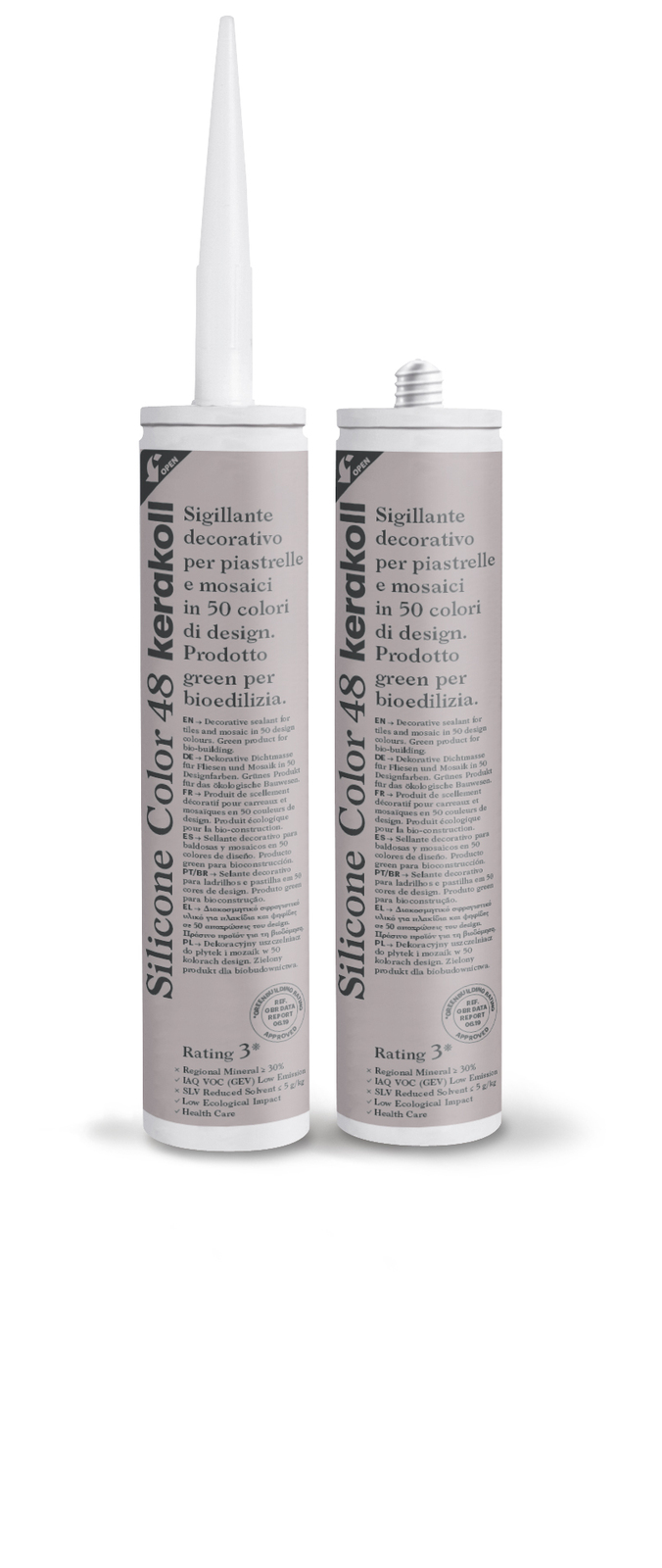 Decorative sealant for tiles and mosaic in 39 design colours. Green product for bio-building. Silicone Color develops a high degree of adhesion to non-absorbent surfaces, guaranteeing the integrity and watertightness of ceramic and porcelain coverings subject to deformation.