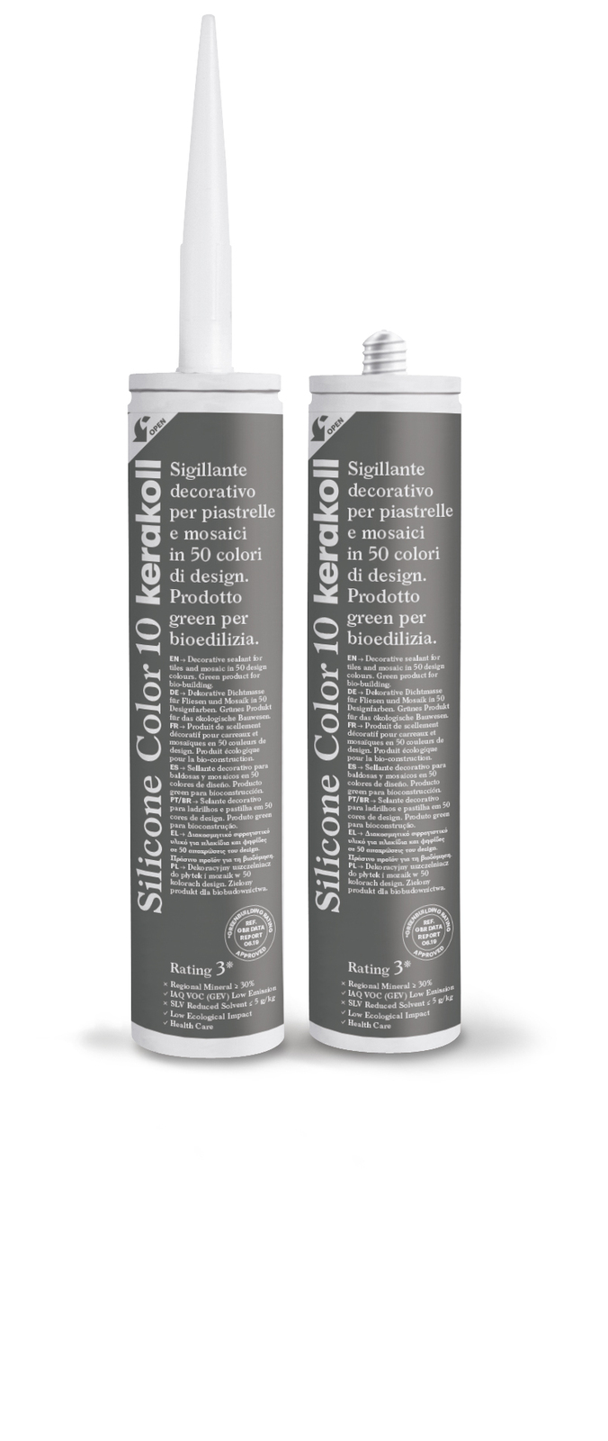 Decorative sealant for tiles and mosaic in 12 design colours. Green product for bio-building. Silicone Color develops a high degree of adhesion to non-absorbent surfaces, guaranteeing the integrity and watertightness of ceramic and porcelain coverings subject to deformation.