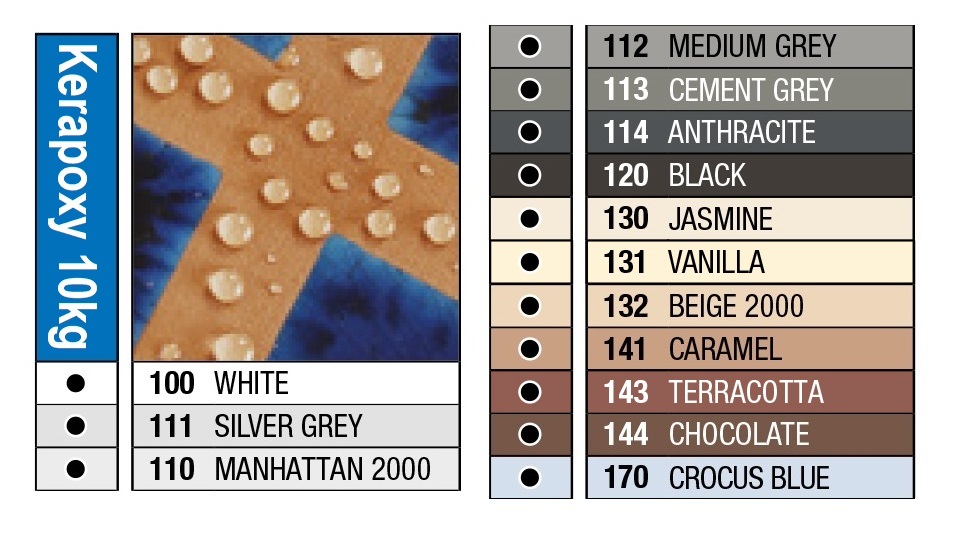 Two-component, acid-resistant epoxy mortar for grouting joints wider than 3 mm, available in 26 different colours. May also be used as an adhesive.
