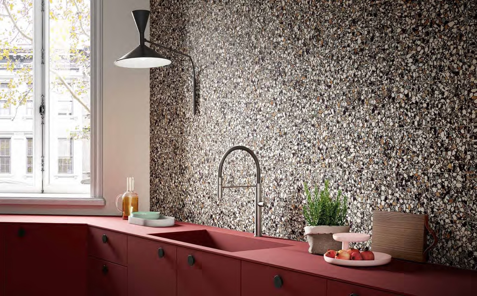 The Fragment collection consists of a 200mm x 200mm authentic terrazzo look tile suitable for either floor or wall applications as well as a  75mm x 400mm subway shaped wall tile with a structured finish in a rich gloss glaze available in 8 on trend colours.