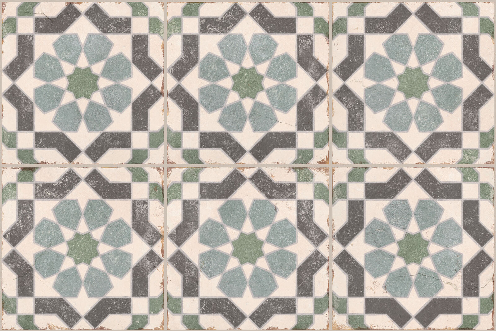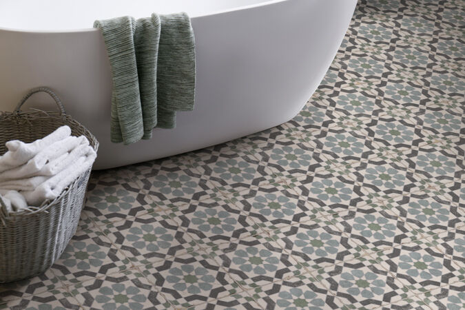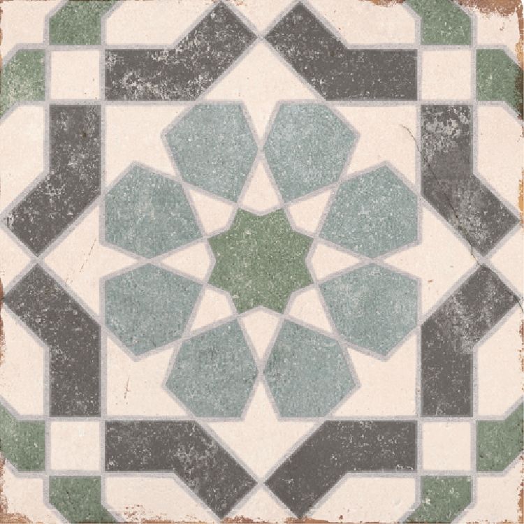 With its geometric star design and softly aged finish, the Layla tile brings an authentic Mediterranean touch to any space. Muted tones of green, charcoal, and ivory create a vintage look that’s perfect for splashbacks, feature walls, or statement floors.