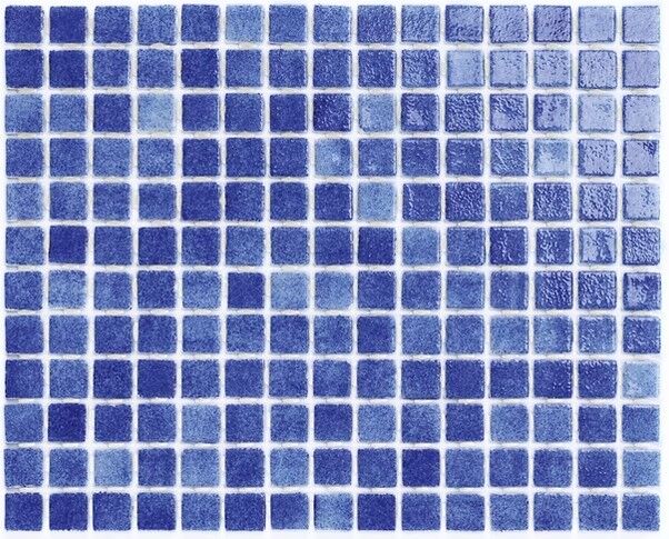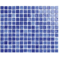 Fog Azul Dark Blue glass mosaic. Perfect for use in swimming pools but can also be used in Bathrooms or for kitchen splashbacks. The translucent properties provide a special brightness and luminosity in contact with the water of the pool.