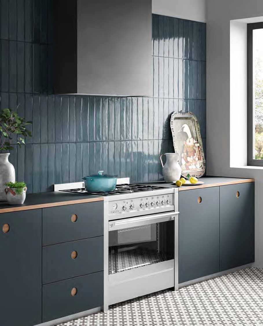 Fragment Blue Notte Brick Gloss 75x400mm Fragment Series Wall Tile. The surface of these tiles has an uneven texture that gives them a handmade feel. The colour also has a slight variation to enhance the handmade feel further. Fragment Blue Notte has a denim blue tone of colour.