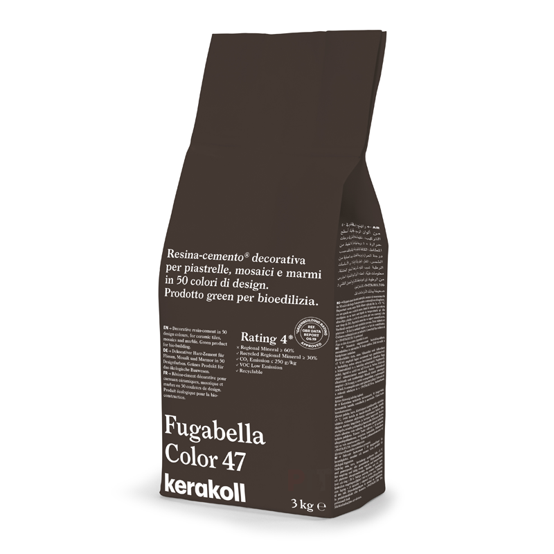 Fugabella® Color achieves performance characteristics such as water repellence, very low water absorption, high surface hardness, high resistance to the most common acidic substances and total colour uniformity. Green product for bio-building.