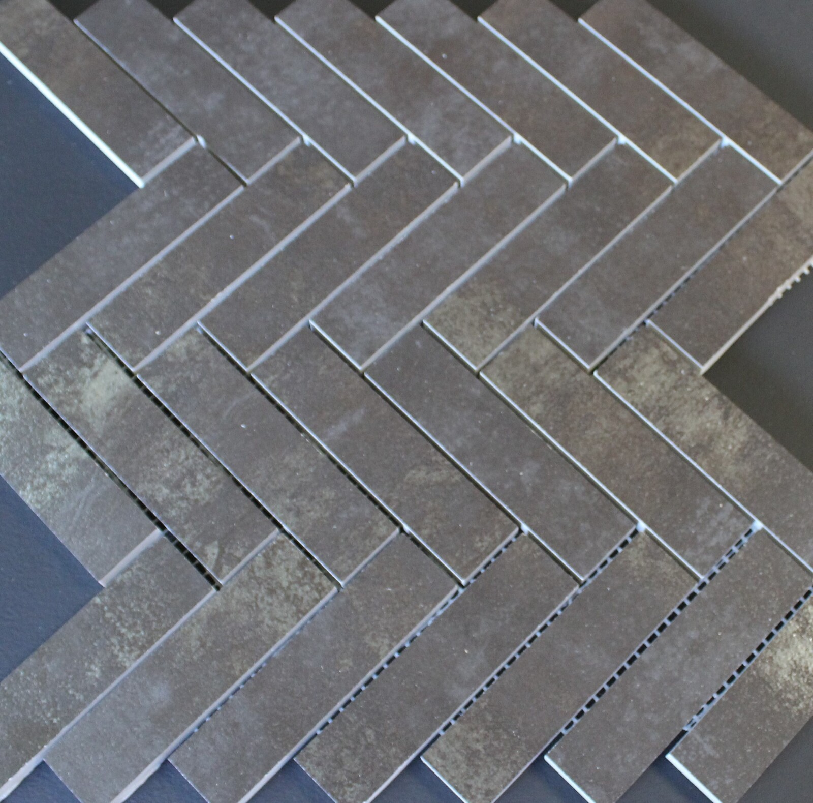 A stunning porcelain herringbone metallic mosaic, great for any feature wall or splashback