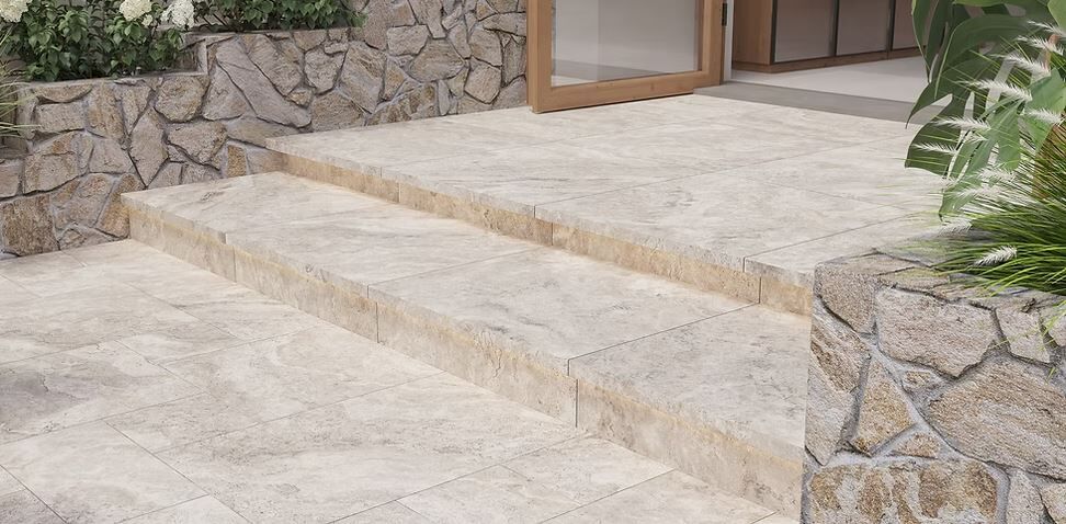 Travertino Sterling Paver Drop Edge 400x600x20x40mm Natural Stone Style Paver Drop Edge