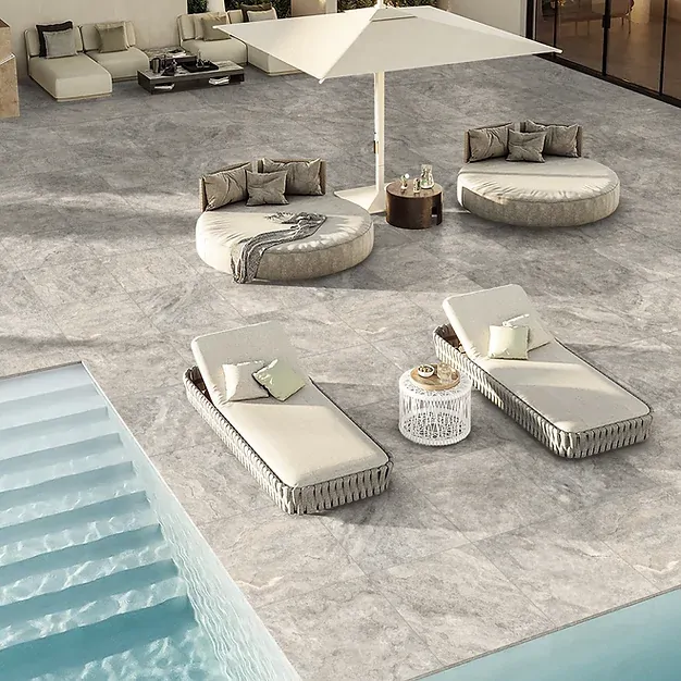 The Travertino Sterling Tech Grip surface is incredibly smooth to touch, but is also able to achieve a P5 rating when wet, this allows it to be used internally and externally creating a seamless look. Also in Bianco, Ice and Pearl colours.